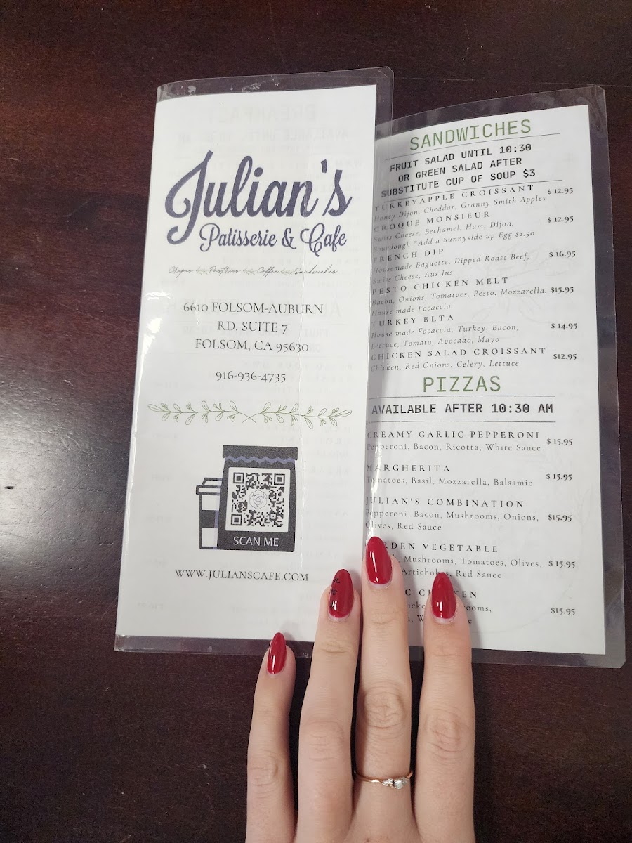 With rave reviews emphasizing the café's cleanliness, diverse menu, and friendly staff, it’s no wonder that Julian's has become a beloved local gem. Whether you’re stopping by for a sweet treat, a robust coffee, or a savoring brunch with friends, Julian's Patisserie and Cafe is a delightful destination that promises to elevate your culinary experience in Folsom.